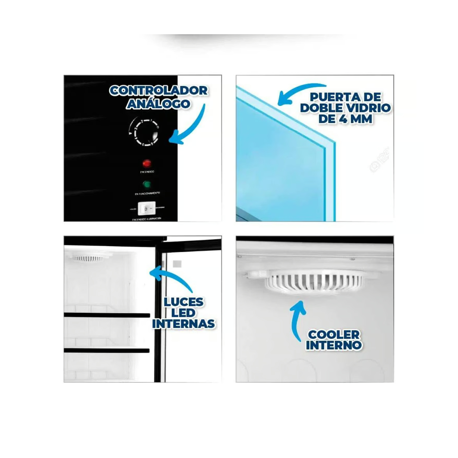 IDEAL PARA EXHIBICIÓN EN COMERCIOS COMO BODEGAS Y MINIMARKETS, PARA REFRIGERACIÓN, MANTENCIÓN DE PRODUCTOS ENVASADOS, BEBIDAS, JUGOS Y OTROS PRODUCTOS.